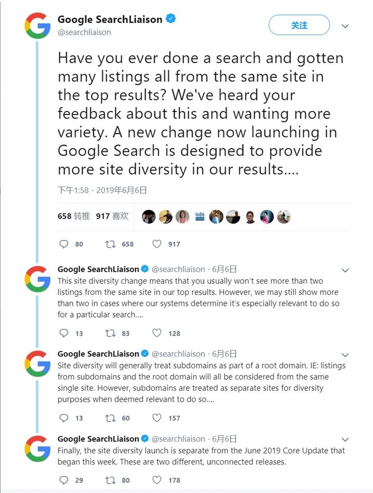 IT之家(jiā)6月9日消息 據外媒消息,認證為(wèi)Google SearchLiaison的Twitter帳戶發文稱,Google正在對Google搜索進行(xíng)一些(xiē)小(xiǎo)改動,以響應用戶反饋,要求其搜索結果更加多(duō)樣化。該調整旨在防止搜索結果包含來(lái)自同一站(zhàn)點的多(duō)個(gè)搜索結果。Google稱這些(xiē)變化“旨在為(wèi)我們的搜索結果提供更多(duō)的網站(zhàn)多(duō)樣性。”